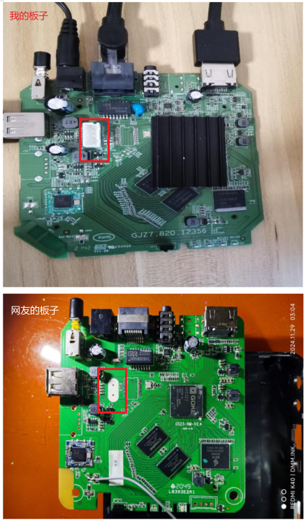 - 红框里面的TTL调试针脚,帖子的主板没有,我的主板上是全的。